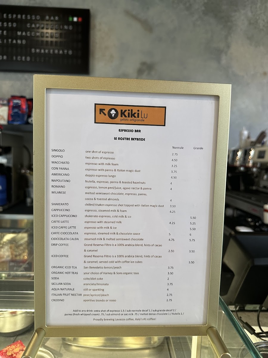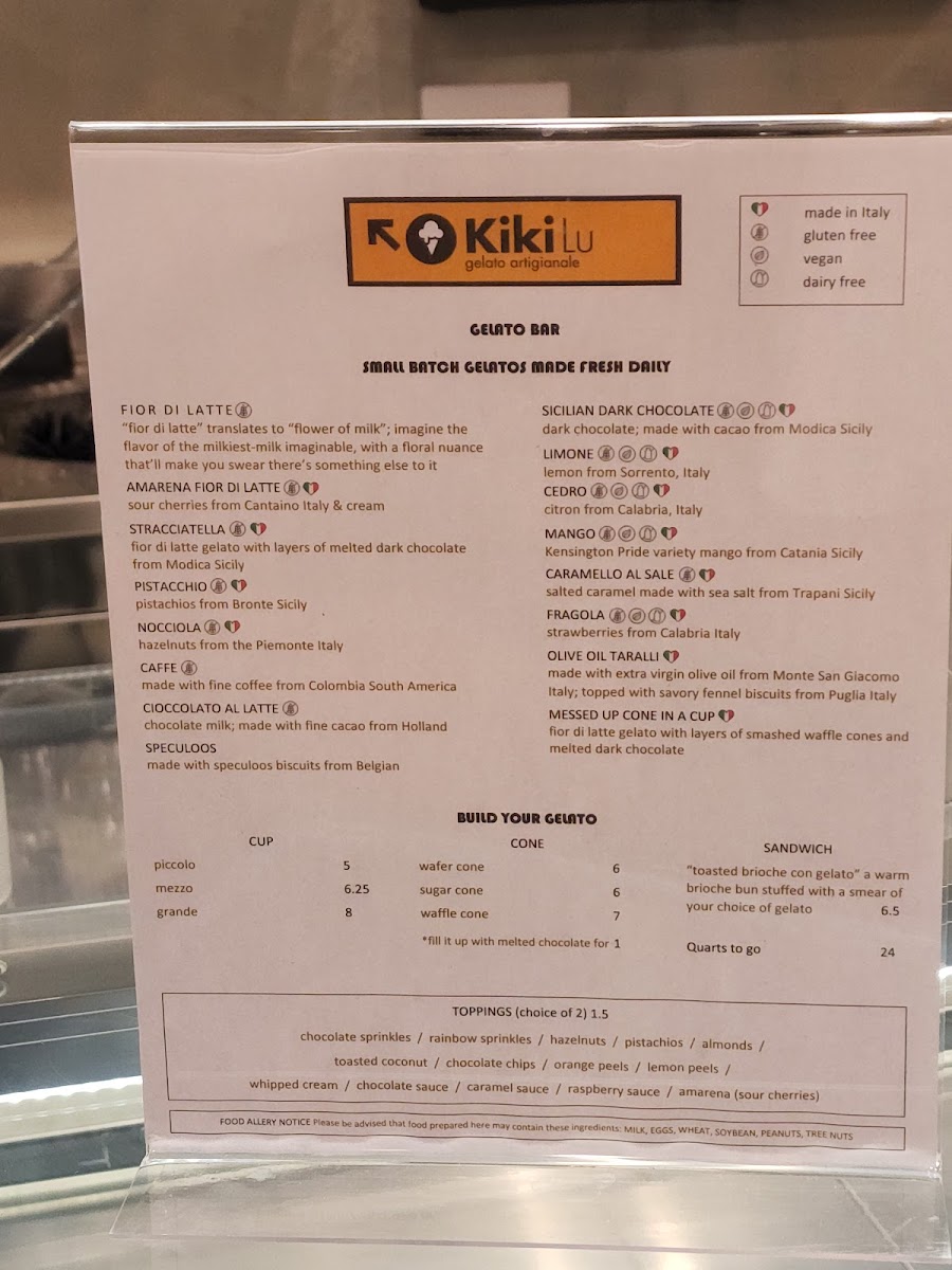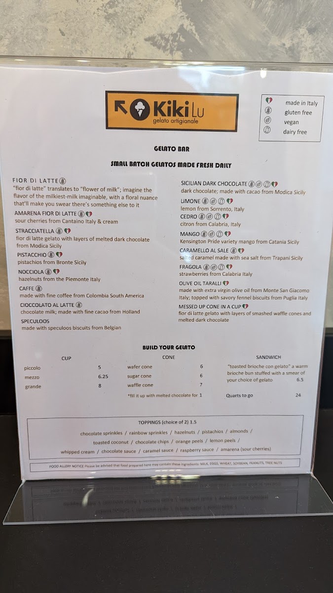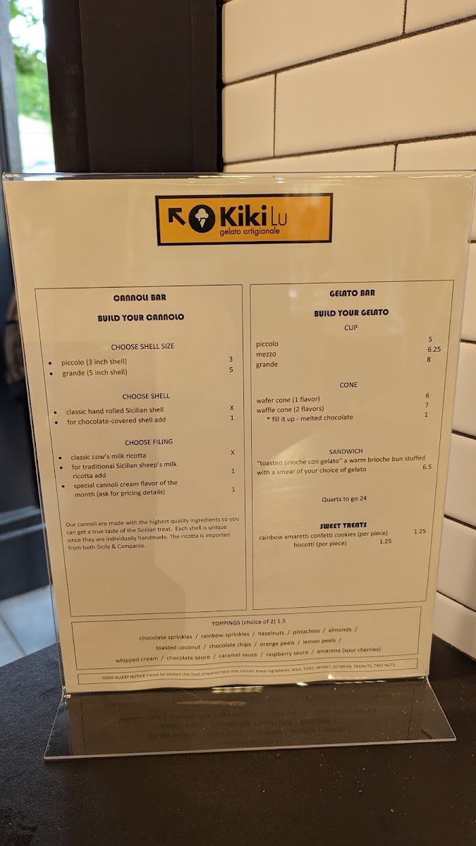 Kikilu Gelato Menu